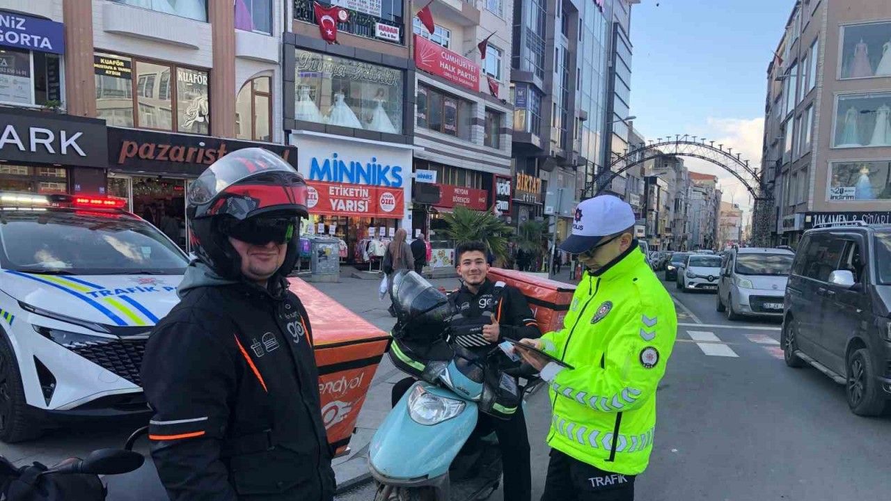 İlçede yoğun trafik akışının olduğu caddelerde Çorlu İlçe Emniyet Müdürlüğü Trafik Büro Amirliği ekiplerince motosikletlilere yönelik denetimler gerçekleştirildi. Denetimlerde kurallara uyan motosikletli kuryeler örnek gösterildi.