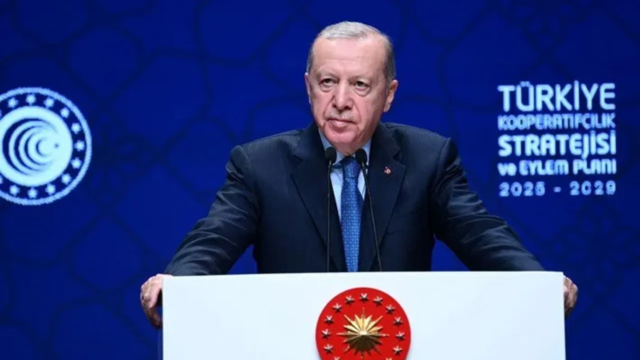 Türkiye’de 6,5 milyonu aşkın vatandaşın ortağı olduğu 62 bin kooperatifin faaliyet gösterdiğini kaydeden Cumhubaşkanı Erdoğan, "Bunu Türkiye’nin ticari ve ekonomik hayatı adına çok kıymetli bir kazanım olarak gördüğümüzü hassaten ifade ediyorum. Ancak Avrupa Birliği’nde 165 milyonu aşkın kooperatif ortağı ile 250 bin kooperatif olduğu düşünüldüğünde, bu alanda henüz arzu edilen seviyede olduğumuzu ne yazık ki söyleyemeyiz. Dikkate değer bir başka husus şudur. Kooperatifler sadece ülkemizde değil, son yıllardır dünyada da ön plana çıkmaya başlamıştır. Vahşi kapitalizmin acımasız dişlileri arasında ezilmek istemeyen yerel üreticiler, güvenli bir limanı olarak kooperatiflere sığınıyor. Bilhassa bütçe, network, teknolojik kapasite itibariyle pek çok devleti geride bırakan küresel şirketlerle rekabette, değil bireyler, değil makro işletmeler, yerel ölçekte büyük firmalar bile çoğu zaman yetersiz kalıyor. Belli başlı alanlarda tekelleşen bu şirketlerin agresif fiyat politikalarıyla küçükleri yuttuğuna şahit oluyoruz. Giderek daha ürkütücü boyutlara ulaşan bu durum, kooperatifçiliği teşvik eden temel faktördür. Şu rakamlar, küresel düzeyde bir arayışın en somut işaretidir. Uluslararası Kooperatif Birliği’nin verilerine göre, dünya genelinde 3 milyon kooperatif bulunuyor. Dünya nüfusunun yüzde 12’si bir kooperatifin iş ortağıdır. Kooperatiflerin toplam cirosu ise 2,4 trilyon doları geçiyor. 2025 yılının Birleşmiş Milletler tarafından Uluslararası Kooperatifler Yılı ilan edilmesini bu bakımdan çok yerinde bir karar olarak görüyoruz" dedi.