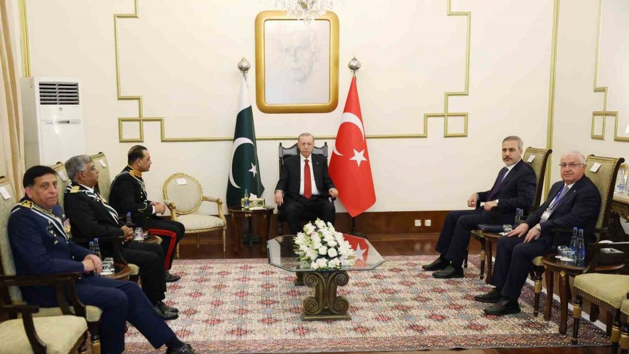 Cumhurbaşkanı Recep Tayyip Erdoğan, resmi ziyaret düzenlediği Pakistan’da ordunun kuvvet komutanlarını kabul etti.