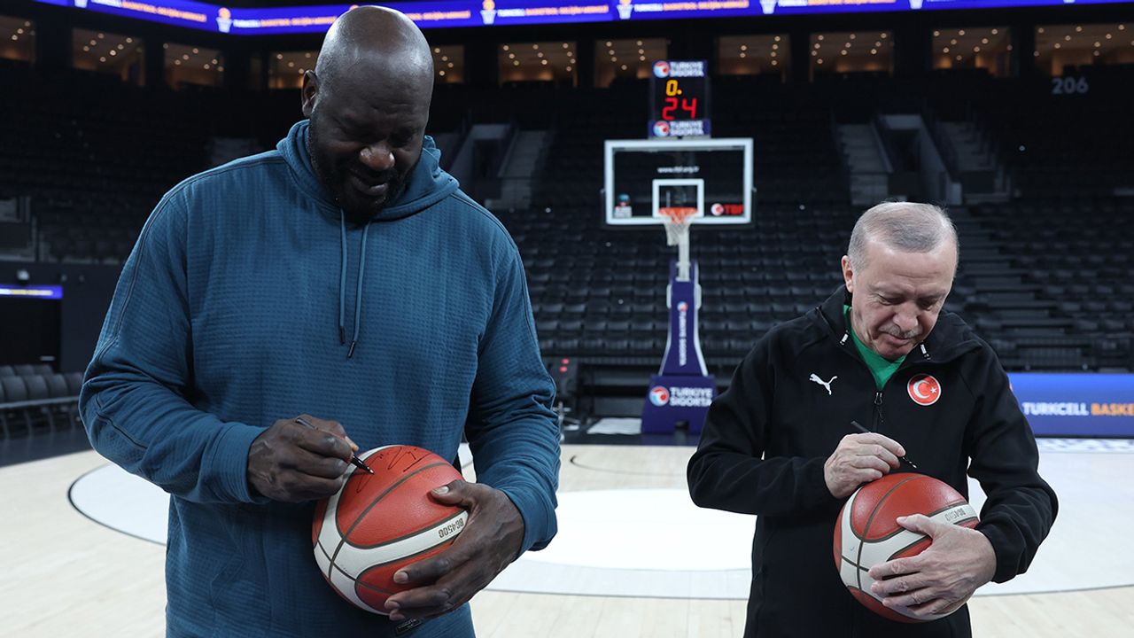 Cumhurbaşkanı Recep Tayyip Erdoğan, Amerikalı ünlü basketbol efsanesi Shaquille O'Neal ile İstanbul'da bir araya geldi. Cumhurbaşkanı Erdoğan, basketbol toplarını imzaladıkları anlara dair fotoğrafları kendi sosyal medya hesabından paylaştı.