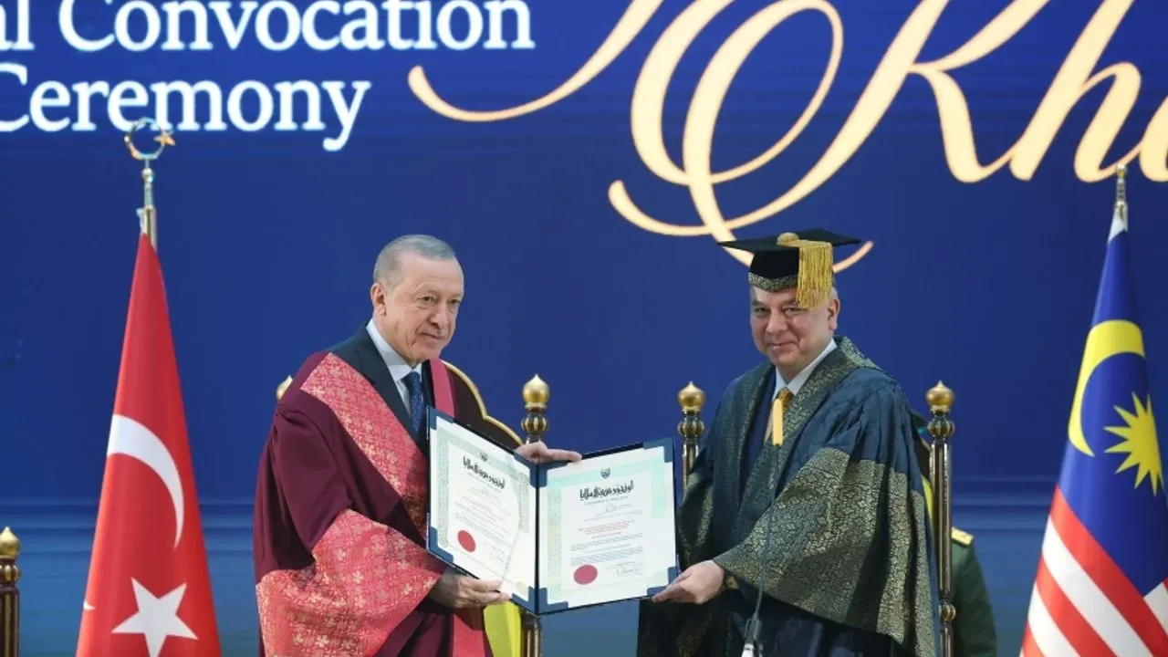Cumhurbaşkanı Recep Tayyip Erdoğan’a Malezya’da Perak Sultanı Nazrin Şah tarafından uluslararası ilişkiler alanında fahri doktora beratı tevdi edildi.
