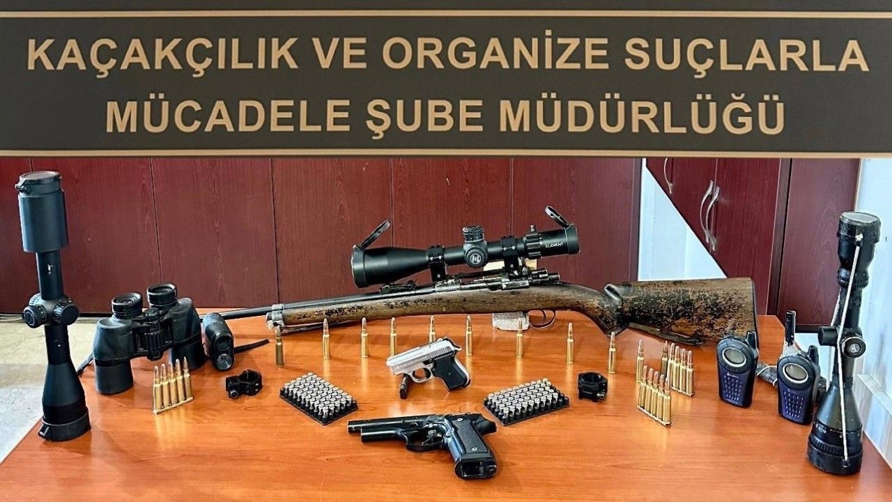 Alınan bilgiye göre, Anamur Cumhuriyet Başsavcılığı koordinesinde İl Emniyet Müdürlüğü Silifke KOM Büro Amirliği ekipleri, 6136 sayılı kanuna muhalefet suçuna yönelik çalışma yaptı. Ekiplerin yaptığı çalışma da Bozyazı ilçesinde M.N.’yi belirleyerek evinde ve aracında arama gerçekleştirdi. Yapılan aramada 1 adet dürbünlü uzun namlu piyade tüfeği, 2 adet ruhsatsız tabanca, 97 adet 9 mm mermi, 2 adet piyade tüfek dürbünü, 25 adet 7.92x57 mm mavzer fişeği, 2 adet mesafe dürbünü, 2 adet telsiz, 3 adet koruma altındaki dağ keçisi derisi, dağ keçisi etiyle, etinden yapılan sucuklar ele geçirildi. Durumun bildirildiği Doğa Koruma ve Milli Parklar Bozyazı Şubesi ekipleri tarafından şahsa 1 milyon 961 bin TL para cezası kesildi. El konulan sucuk ve etlerin ilgili kurumlar tarafından imha edildiği bildirildi.6136 silahlı kanuna muhalefet suçundan da bugün adliyeye sevk edilen şüpheli, çıkarıldığı mahkemece tutuklandı.