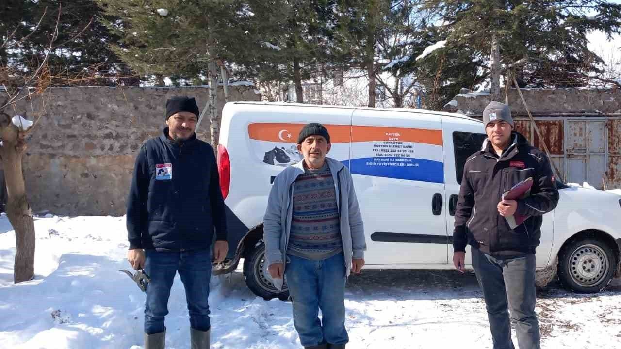 Kayseri Damızlık Sığır Yetiştiricileri Birliği personeli, zorlu kış şartlarına rağmen kırsal mahallelere hizmet götürmeye devam etti.