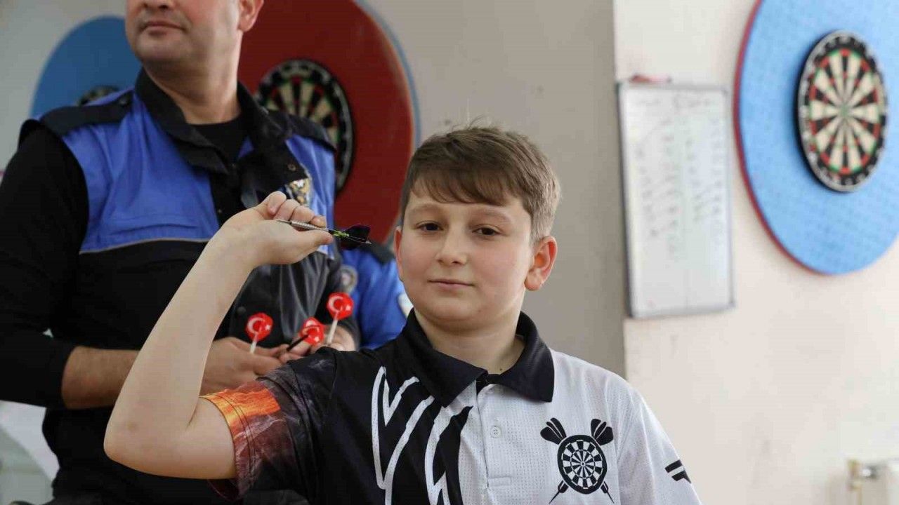 Adana’da polislerden dart kursu alan 12 yaşındaki Mustafa ve 14 yaşındaki Poyraz, Şehit Eren Bülbül Türkiye Dart Şampiyonasında 3’üncü oldu. Adana polisi üçüncü olan gençlerle dart antrenmanı yaptı.