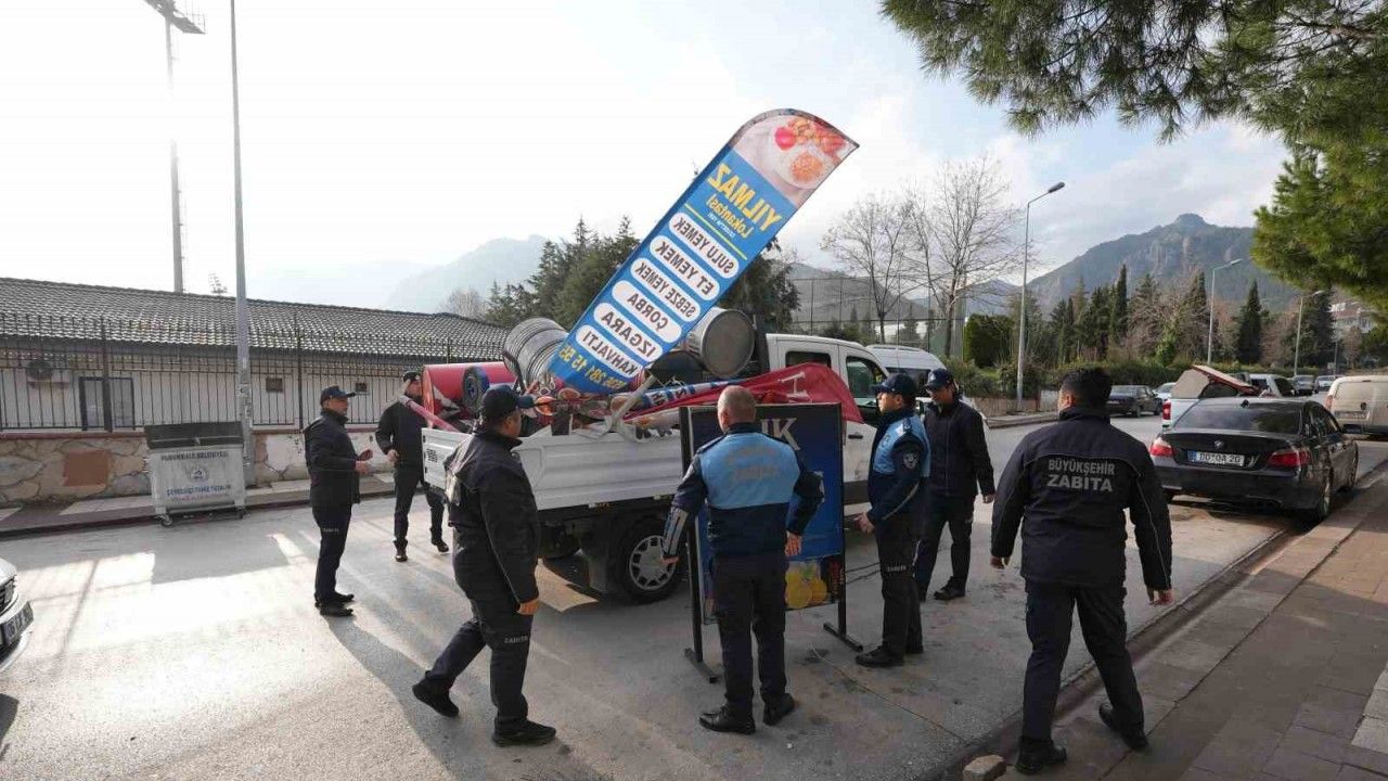 Denizli Büyükşehir Belediyesi Zabıta Dairesi ekipleri, vatandaşların kaldırımlarda rahatça yürüyebilmesi için kent genelinde denetimlerini sürdürüyor. Bu kapsamda yapılan çalışmalarda, cadde ve sokaklarda yaya geçişini engelleyen duba, totem, reklam panosu gibi malzemeler toplandı.