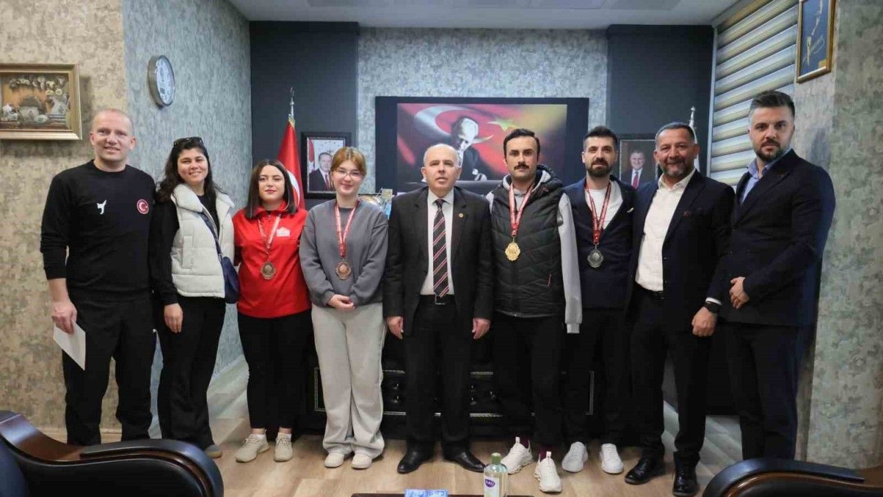 Denizli’yi Türkiye Para Taekwondo Şampiyonasında temsil eden Fatih Gültekin, Ebubekir Temel, Nuriye Gürel ve Serpil Salık, tatamide büyük bir mücadele örneği sergiledi. Fatih Gültekin, K41 kategorisinde şampiyon olurken, Ebubekir Temel K44 kategorisinde Türkiye ikinciliği elde etti. Nuriye Gürel ve Serpil Salık ise aynı kategoride Türkiye üçüncüsü olmayı başardılar. Taekwondo sporuna henüz kısa bir süre önce adım atmalarına rağmen hızla büyük bir başarıya ulaşan dört sporcu, kısa sürede Milli Takım seviyesine kadar yükselmeyi başardı. Sporcular, Antrenörler Alper Karbuz, Ayşe Deniz Karbuz ve Taekwondo İl Temsilcisi Oğuz Çay ile birlikte Gençlik ve Spor İl Müdürü Ömer İlman’ı makamında ziyaret etti. Sporcular, yeni hedeflerini ve geleceğe yönelik planlarını İlman’a anlattı.
