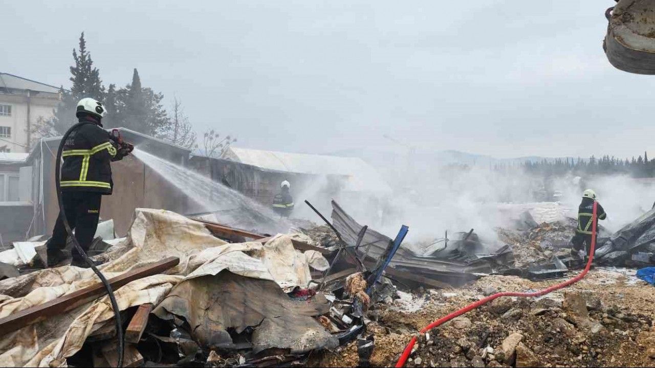 Hatay’da şantiye alanında depo olarak kullanılan 3 konteyner yanarak kullanılmaz hale geldi.