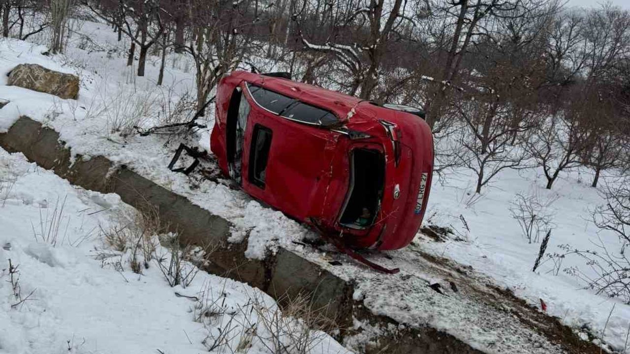 Kayseri’nin Yahyalı ilçesinde sürücüsünün direksiyon hakimiyetini kaybettiği otomobil takla attı.