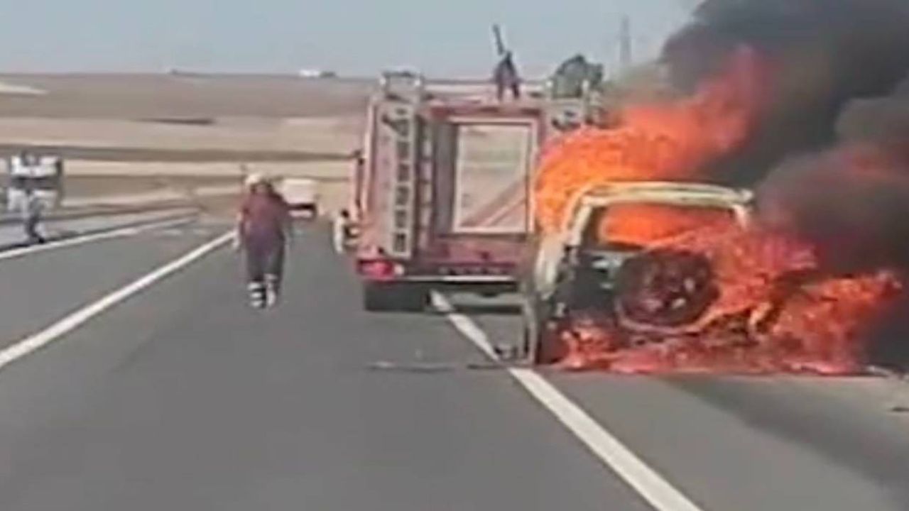 Alevler kısa sürede aracı kaplarken haber verilmesi üzerine itfaiye ekipleri sevk edildi. Ekiplerin yoğun uğraşları sonucu yangın kontrol altına alınarak söndürüldü. Yangın nedeni ile araç küle dönerken, yangının çıkış nedeni ile ilgili inceleme başlatıldı.