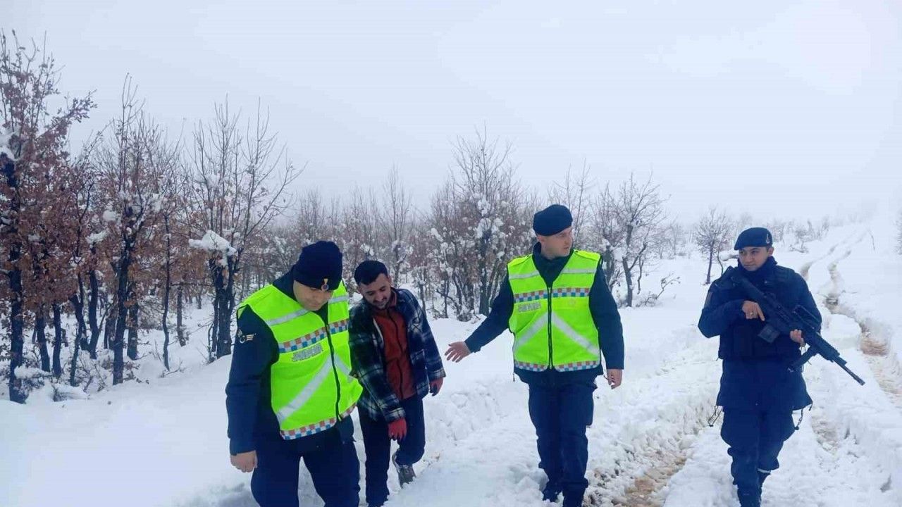 Diyarbakır’ın Çüngüş ilçesinde kar nedeniyle yolda mahsur kalan vatandaş jandarma ekiplerince kurtarıldı.