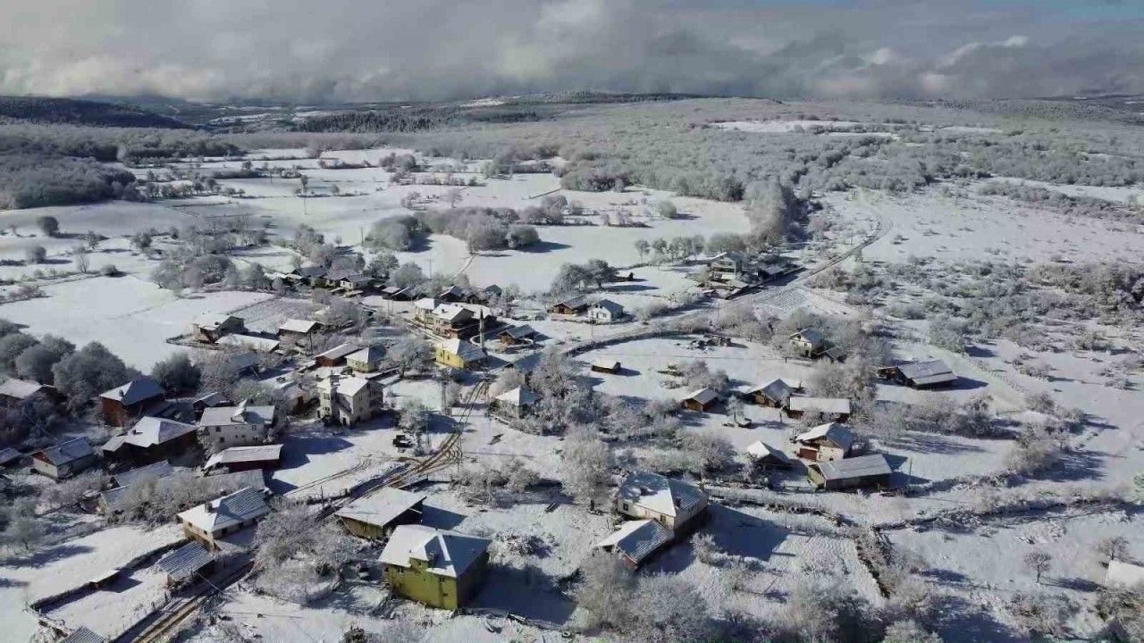 Karabük’ün yüksek kesimlerinde kar yağışı etkili olmaya devam ediyor. Eflani’de de kar yağışı sonrası ilçe merkezi ve köyler beyaz örtüyle kaplandı. Tamamen beyaza bürünen ilçeye bağlı Çukurören köyünde kartpostallık görüntüler ortaya çıktı. Dronla kaydedilen o anlar görenleri mest etti.