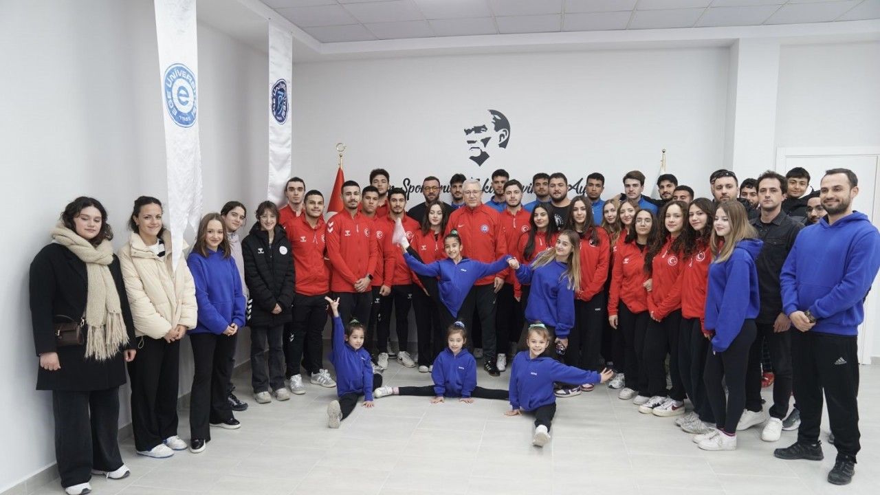 Rektör Prof. Dr. Necdet Budak, "Girişimlerimiz neticesinde yedi yıl önce küllerinden yeniden hayat bulan, birçok branşta başarıdan başarıya koşan EÜ Spor Kulübümüz, bu süre zarfında her daim gurur kaynağımız oldu. Başarılarına her geçen gün yenilerini ekleyen kulübümüz güçlenerek yoluna devam ediyor. Spor Kulübümüz bünyesinde 33 antrenör ve bin 107 sporcu ile kampüsteki spor tesislerinde çalışmalarını sürdürüyor. Üniversitemiz markasına sporun farklı branşlarında gösterdiği başarılarla değer katan kulübümüze, kampüsümüzün en güzel lokasyonunda yeni bir merkez tahsis ettik. Spor ve sporcu dostu bir rektör olarak kulübümüze her daim maddi ve manevi desteğimizi sürdüreceğiz. Bu vesile ile bir kez daha Kulüp Yönetimine, her branşta ter döken sporcularımıza ve teknik kadromuza teşekkür ediyorum" dedi.