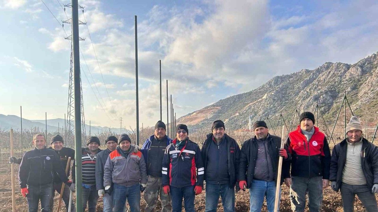 Isparta’nın Eğirdir ilçesinde elma fidanı dikimi yapan çiftçilere modern tarım yöntemleri anlatıldı.