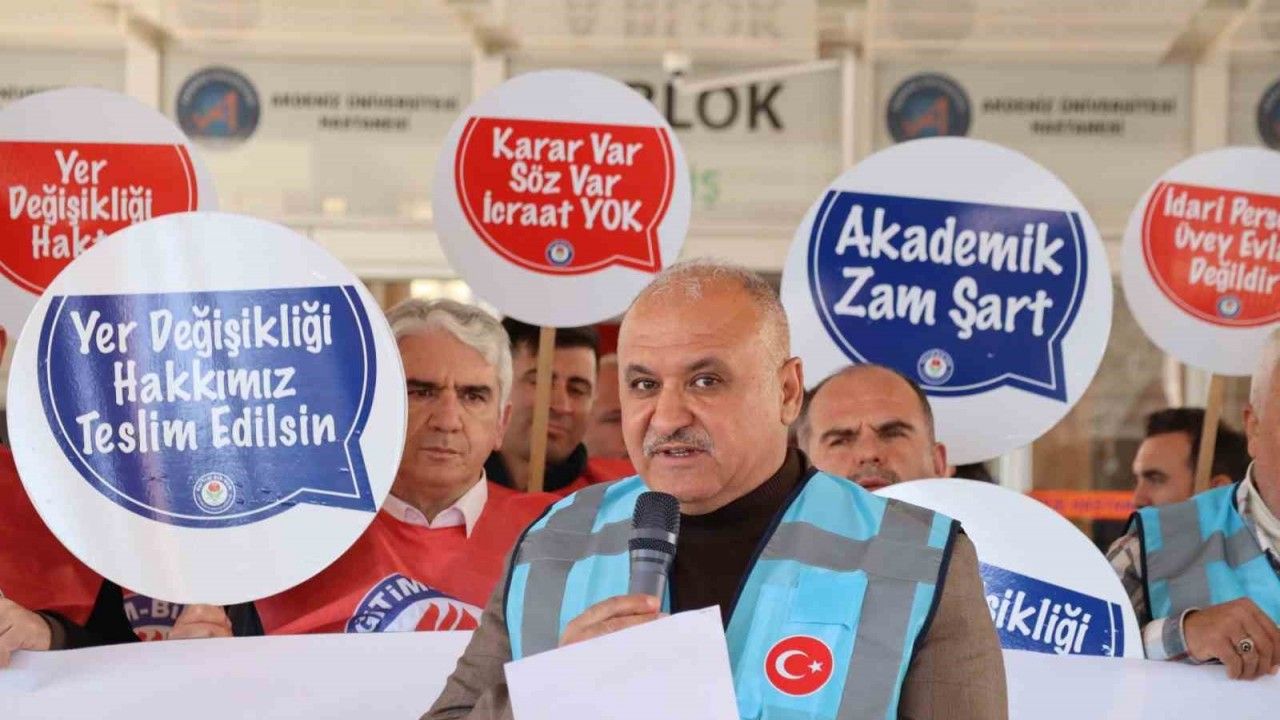Memur Sen İl Temsilcisi ve Eğitim Bir Sen Şube Başkanı Eyüp Bülent Miran, akademisyenlerin ücretlerinin iyileştirilmesi, üniversite daire başkanlarına makam tazminatı verilmesi, araştırma görevlilerine yeşil pasaport hakkı tanınması, 3600 ek gösterge vaadinin yerine getirilmesi, idari personele eğitim-öğretim ve geliştirme ödeneği sağlanması, yardımcı hizmetler sınıfının kaldırılması ve üniversite idari personelinin kurumlar arası geçiş hakkı kazanması adına somut adımlar atılması gerektiğini dile getirdi. Miran, "Eğitim-Bir-Sen’in gayretleri sonucunda, Eğitim, Öğretim ve Bilim Hizmet Kolu 6. ve 7. Dönem Kamu Görevlileri Toplu Sözleşmesinde idari personelin yükseköğretim kurumları arasında yer değişikliği konusunda taraflarca çalışma yapılması kararlaştırılmıştır. Bu kapsamda YÖK ve Cumhurbaşkanlığı nezdinde çalışmalar yürütülmüş olsa da henüz işleyen bir sistem oluşturulamamıştır. Bu nedenle, üniversite idari personelinin üniversiteler arası yer değişikliği işlemleri, toplu sözleşme hükmüne dayanarak YÖK Başkanlığı tarafından düzenlenmelidir. Bu düzenleme, üniversiteler arası merkezi yer değişikliğine imkan tanıyacak şekilde hukuki ve fiili bir çerçeveye oturtulmalıdır" ifadelerini kullandı.