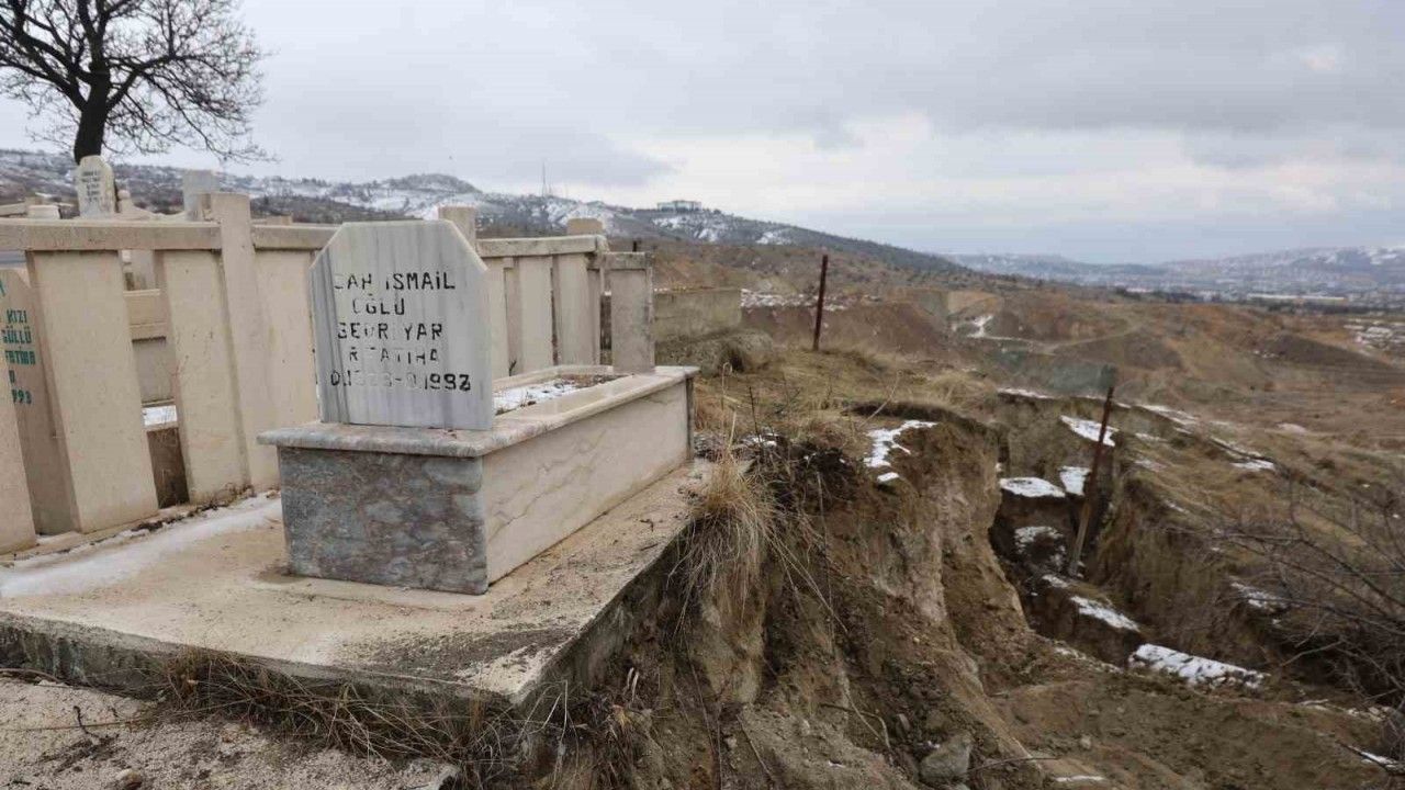 Elazığ’da mezarlıkta heyelan meydana geldi. Mezarlıkta oluşan yarıklar üzerine cenazeler, Elazığ Belediyesi tarafından dini vecibelere uygun olarak başka mezarlıklara taşınmaya başlandı.