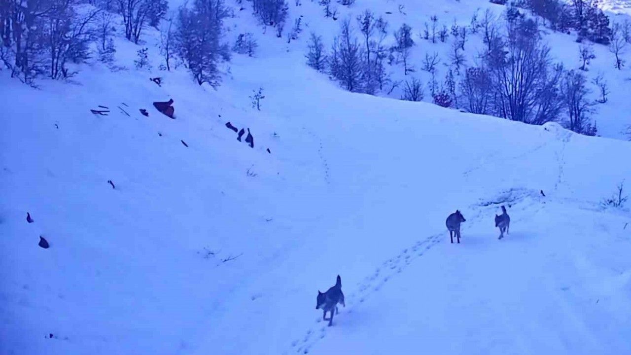 Elazığ’da kar yağışı sonrası doğada yiyecek bulmakta güçlük çeken kurtlar, Baskil ilçesine bağlı Hacı Hüseyinler köyüne indi. Köyün girişinde bulunan güvenlik kamerasına yansıyan kurtlar, köyün girişinde yiyecek ararken görüntülendi. Kurt sürüsü, köy girişinde gezdikten sonra gözden kayboldu. O anlar güvenlik kamerası tarafından saniye saniye kaydedildi.