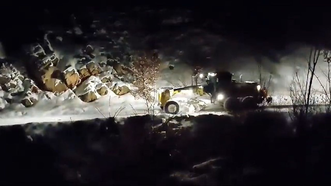 Elazığ’da 2 gün önce başlayan kar yağışından dolayı kapanan köy yollarında çalışmalar devam ediyor.