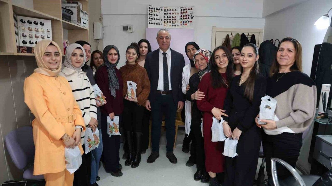 Elazığ Halk Eğitim Merkezi Müdürlüğündeki kuaförlük kursunda eğitim alan kadın kursiyerlere cilt bakım seti hediye edildi.