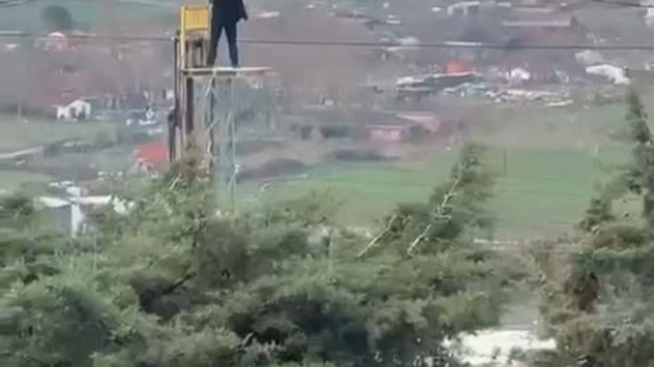 İstanbul’un Arnavutköy ilçesinde bir şahıs, yetersiz güç geldiğini düşündüğü bir nokta nedeniyle elektrik kablolarının arızalı olduğunu düşündü. Forklift yardımıyla tırmandığı elektrik kablolarını onarmaya çalıştı. İlginç anlar cep telefonu kamerasıyla böyle görüntülendi.