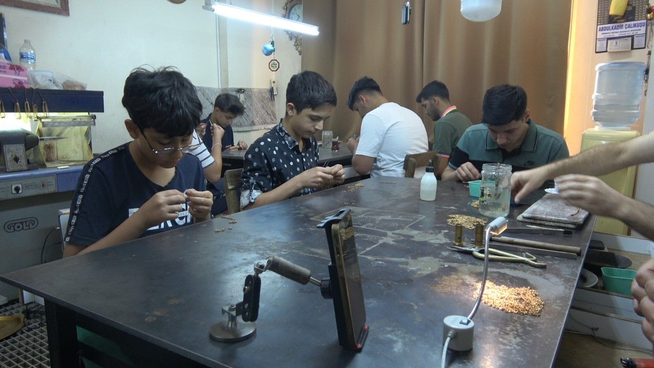 Kilis Kuyumcular Odası Başkanı Zafer Bilik, kentteki kuyumculuk mesleğinin görünmeyen yüzünü anlattı. Kuyumcular Çarşısı’nda 60 atölyede hem Türk hem Suriyeli gençlerin meslek öğrendiğini belirten Bilik, "Altın bileziği kollarına takmak için burada eğitim alıyorlar" dedi.
