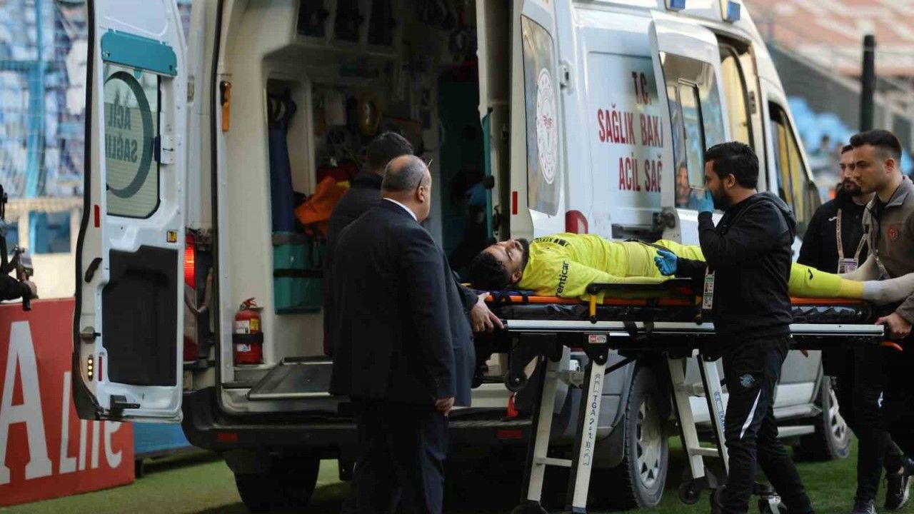 Adana Demirspor, Bodrum FK maçında ensesine darbe alan Adana Demirspor kalecisi Vedat Karakuş ambulansla hastaneye kaldırıldı.