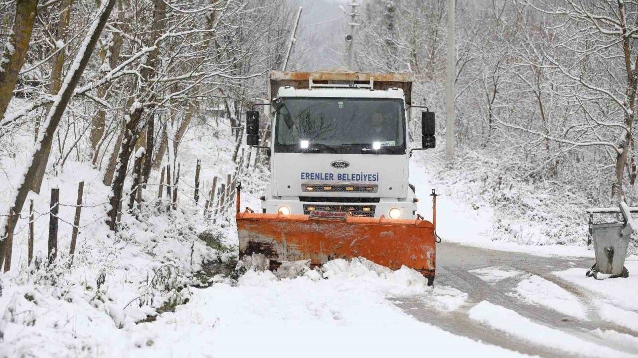 Fen İşleri Müdürlüğü ekipleri ilçe genelinde kar küreme ve tuzlama çalışmalarını sürdürüyor. Yoğun kar yağışının etkili olduğu ilçede ekipler vatandaşların kar yağışından etkilenmemesi adına çalışmalarını aralıksız bir şekilde devam ederken Erenler Belediye Başkanı Şenol Dinç, "Şehrimiz genelinde hasretle beklediğimiz kar yağışı etkili şekilde sürüyor. Erenlerimizde tüm mahallelerimizde ekiplerimiz hemşehrilerimizin olumsuz bir durum yaşamaması için kar küreme ve tuzlama çalışmalarını hummalı şekilde sürdürecek" dedi.