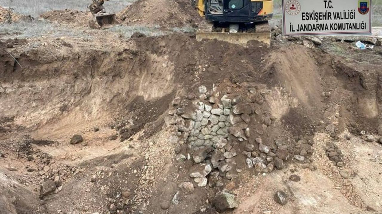 Edinilen bilgilere göre, İl Jandarma Komutanlığı ekipleri, Odunpazarı ilçesine bağlı Yukarıçağlan Mahallesi Kurucu Kuyusu mevkiinde 1’inci derece arkeolojik sit alanında şüpheli şahısların kaçak kazı yaptığı bilgisi üzerine 30 Ocak’ta düzenlediği operasyonla 2 şüpheliyi suçüstü yakaladı. Yapılan incelemede kepçe ile 10,45x9,95 metre genişliğinde ve 2,40 metre derinliğinde çukur kazıldığı tespit edildi. Gözaltına alınan 2 şüpheli, "2863 Sayılı Kültür ve Tabiat Varlığı Koruma Kanunu’na muhalefet" suçundan tutuklanarak Eskişehir L Tipi Kapalı Ceza İnfaz Kurumu’na teslim edildi.