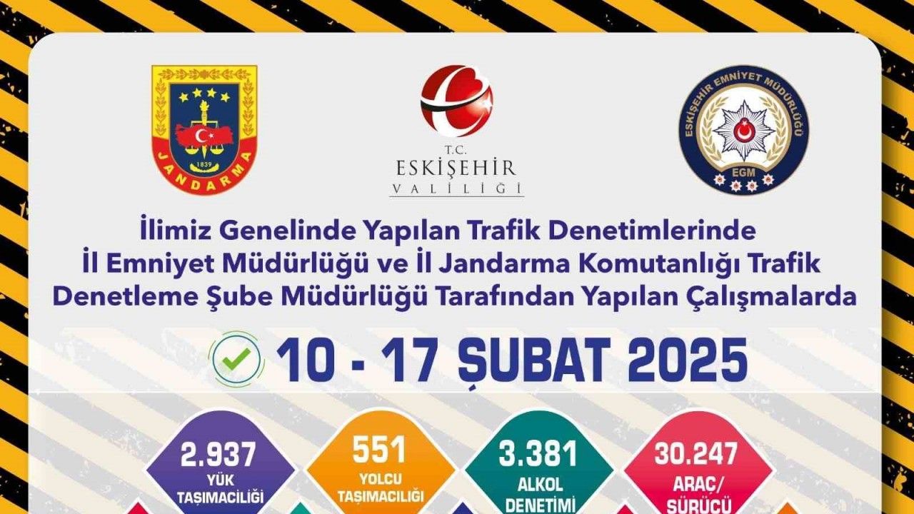 Eskişehir’de polis ve jandarma ekiplerince son 1 hafta içerisinde gerçekleştirilen trafik denetimlerinde 30 bin 247 araç ve sürücü kontrol edilirken, 9 bin 693 adet trafik cezası yazıldı.