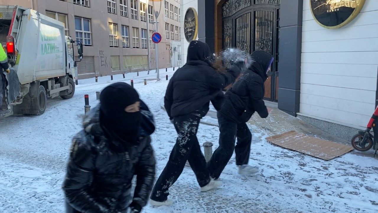Çocuklar kartopu savaşı ile doyasıya eğlendi