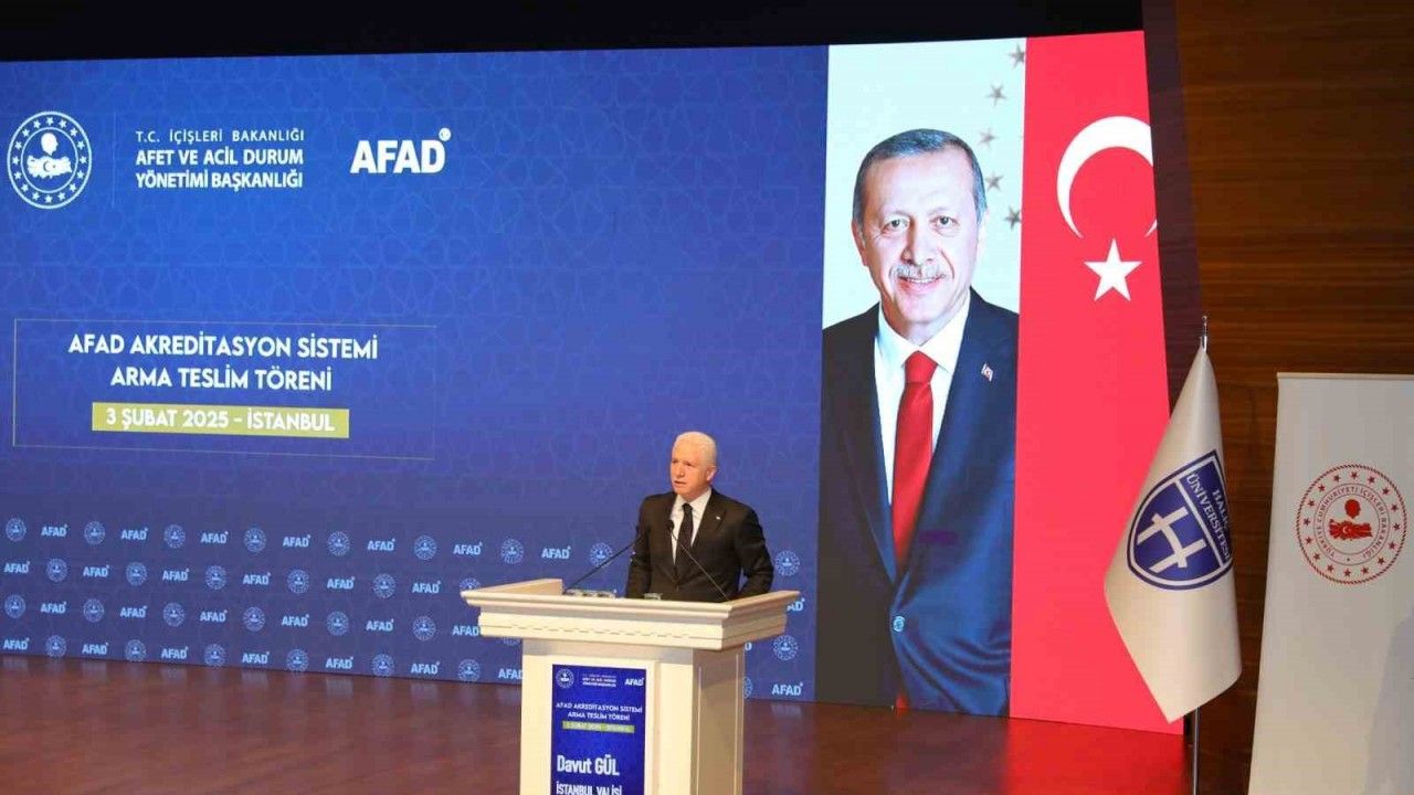 Eyüpsultan’da AFAD tarafından arama kurtarma alanındaki akreditasyon çalışmalarını başarıyla tamamlayan toplam 72 ekip için "Akreditasyon Sistemi Arma Teslim Töreni" düzenlendi. Törende konuşan İstanbul Valisi Davut Gül, "Allah bir daha memleketimize o ölçekte kaza, bela yaşatmasın. Olur da başımıza bir iş gelirse yaşadıklarımızdan da tecrübe alarak aynı sıkıntıları yaşamadan daha iyisini yapmamız gerekiyor" dedi.