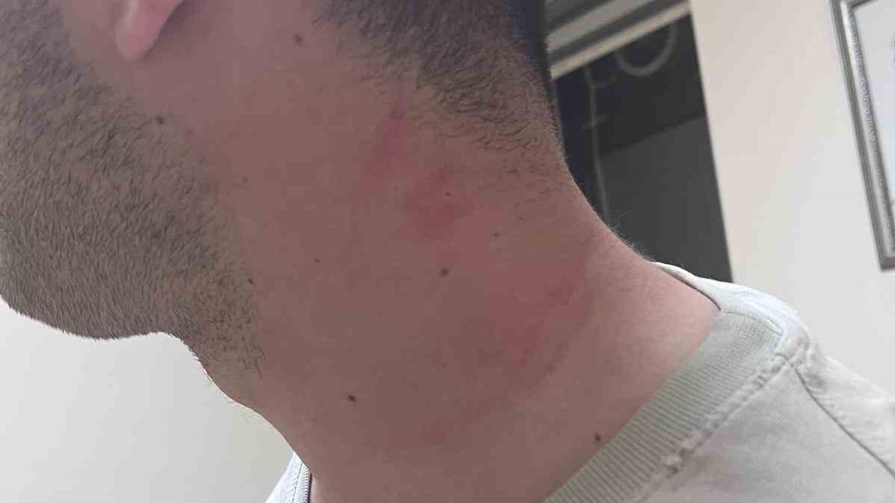 Adli tıp raporuna da yer verilen iddianamede gazeteci A.F.G.’nin vücudunda sol ön kolunda (hiperemik 3 cm lik ve 1,5 cm lik çizik), göğüs bölgesi sağ üst ön kısmında (2x1,5 cm lik ve 2x1 cm lik hiperemik alan) ve orta kısmında kırmızı renkte ekimoz tespit edildiği belirtildi. Ayrıca müştekinin boyun sağ alt dış yan bölümde ön arka uzanımlı (3x1,5 cm lik kırmızı hiperemik alan) ve orta kısmında (0,5 cm lik ekimoz), boyun sol alt dış yan kısmında ön arka uzanımlı (10x0,1 cm lik ve 7x0,1 cm lik hiperemik) hat şeklinde ekimoz alanları, sol kol ön iç kısmında 0,2 cm lik kırmızı renkte ekimoz tespit edildi anlatıldı.