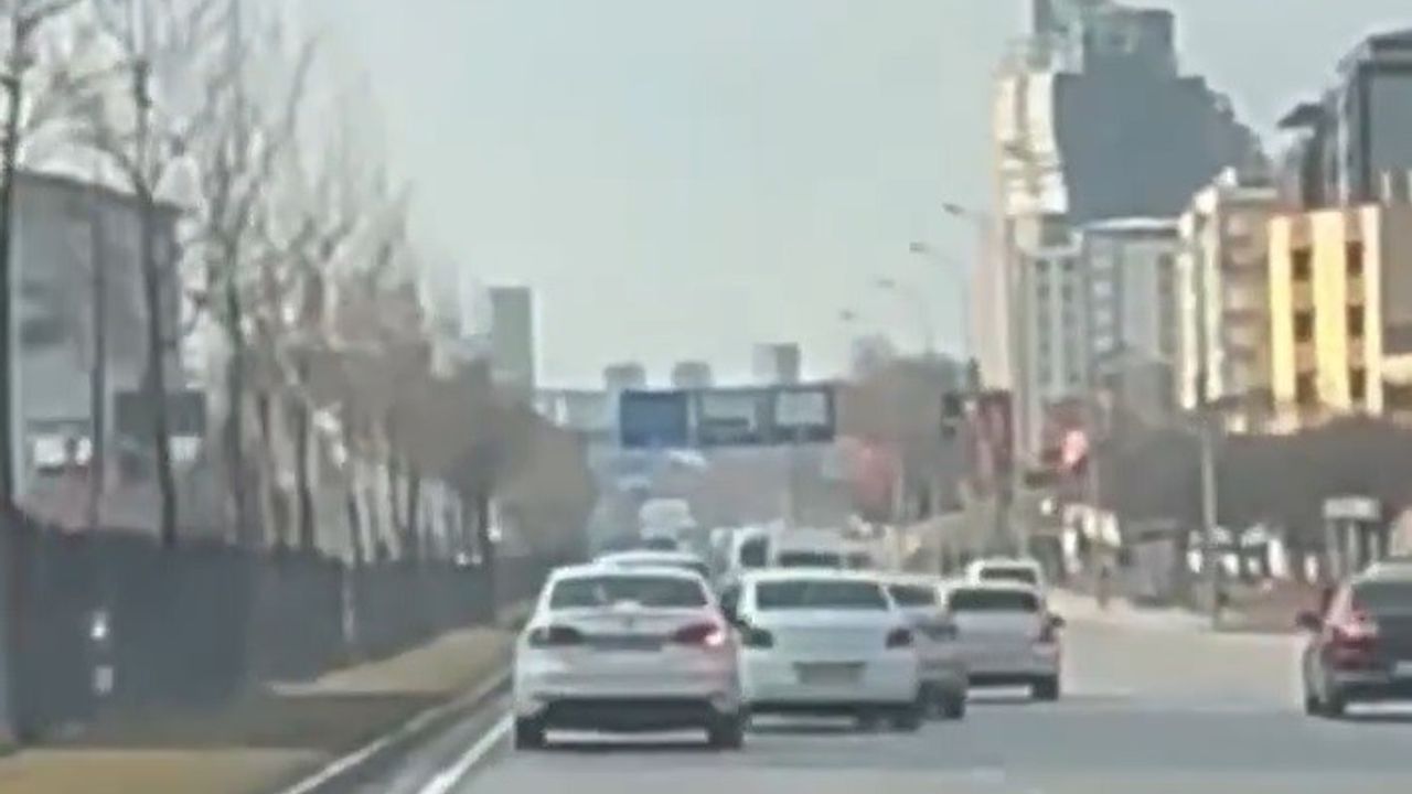 İpek Yolu’nda makas atarak ilerleyen plakası ve sürücüsü belirlenemeyen iki araç trafikte tehlike saçtı. Sürücülerin hem kendilerinin hem de diğer sürücülerin hayatını tehlikeye attığı o anlar araç kamerasına yansıdı. Trafiği tehlikeye sokan iki araç bir süre sonra gözden kayboldu.