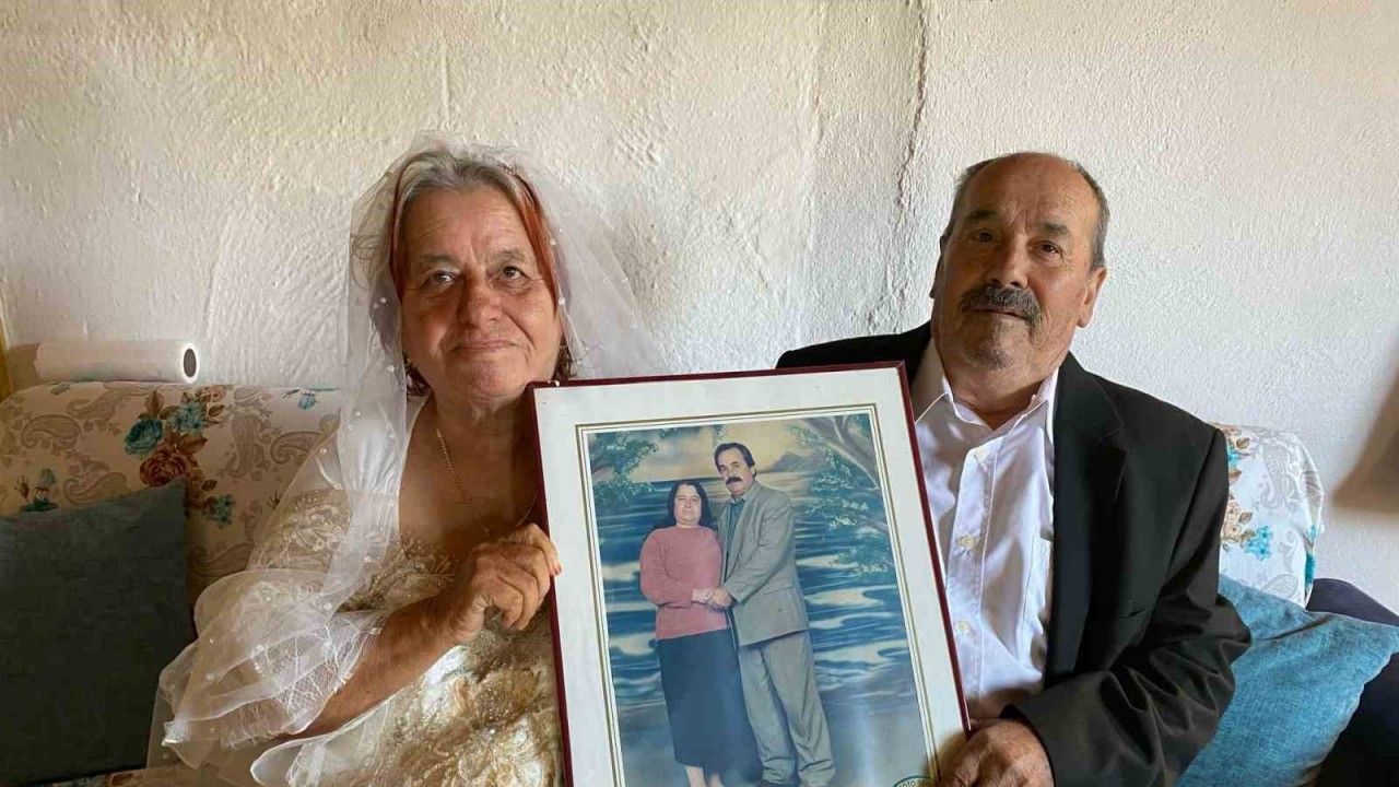 Serik ilçesi Yanköy Mahallesi’nde yaşayan 5 çocuk ve 27 torun sahibi Akbaş çifti, yıllar önce birbirlerini görmeden mahalle halkı tarafından evlendirilmişti. Çocukları, anne ve babalarına unutulmaz bir sürpriz hazırlayarak onlara ilk kez gelinlik ve damatlık giydirdi.