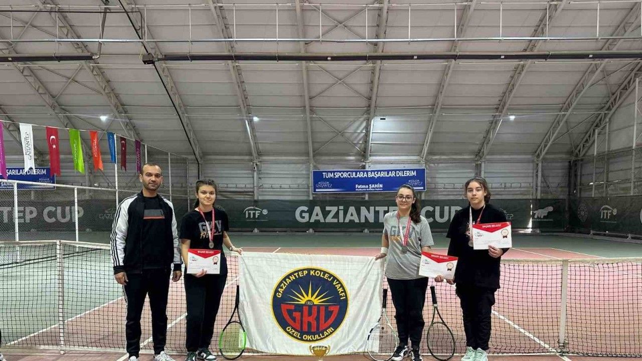 Gaziantep Gençlik ve Spor İl müdürlüğü ve Okul Sporları tarafından 10-14 Şubat 2025 tarihleri arasında ilimizde düzenlenen Yıldızlar (Kızlar-Erkekler) tenis müsabakaları sonucunda Gaziantep Kolej Vakfı Özel Ortaokulu öğrencilerinden Beren Kalyoncu, İpek Taşkıran ve Şeyma Neva Ayşit takım halinde Gaziantep ikincisi olurken, Berkay Turan ve Mustafa Mert Ulutaş takım halinde il dördüncülüğünü elde etti. Başarılı sporcuları kutlayan GKV Özel Okulları Genel Müdürü Fevzi Gürsel okul sporlarında yer alan birçok spor dalının Gaziantep Kolej Vakfı Özel Okullarında öğrencilerin yetenekleri doğrultusunda gerçekleştirildiğini, takım oyunlarının yanı sıra bireysel spor dallarının da yaygın olarak tercih edildiğini ifade etti.