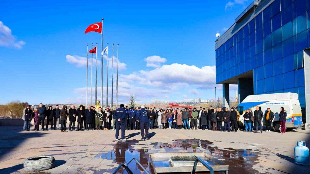 Ankara İtfaiyesinde görevli eğitmenler tarafından Gölbaşı Belediyesinde yangın tatbikatı gerçekleştirildi. Tatbikata katılan personele, yangının çıkış nedenlerinden nasıl müdahale edilmesi gerektiğine kadar birçok konuda bilgi aktarıldı.