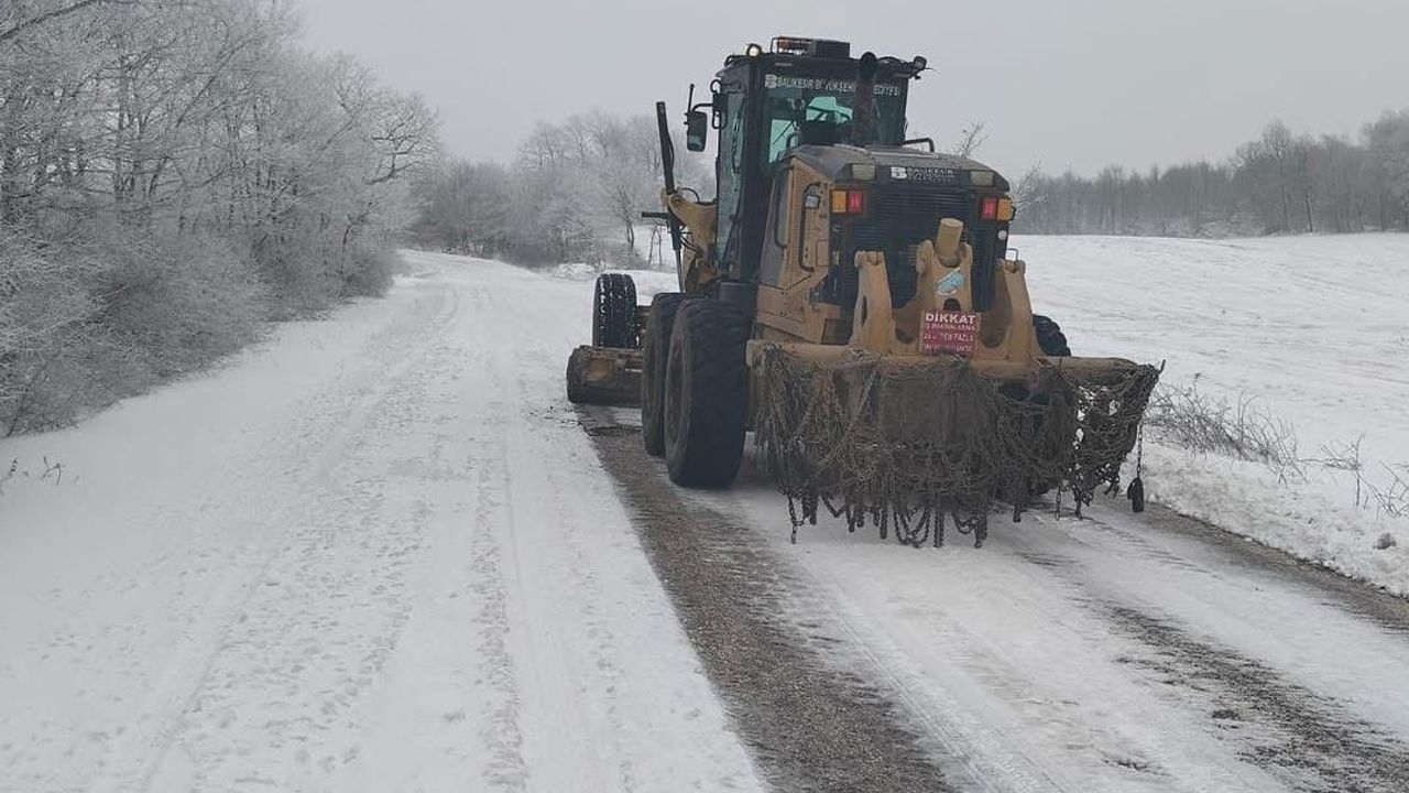 Balıkesir’in Gönen ilçesine bağlı kırsal mahallelerde kar yağışı etkisini gösterirken, Balıkesir Büyükşehir Belediyesi ekipleri yol açma ve tuzlama çalışmalarına aralıksız devam ediyor.
