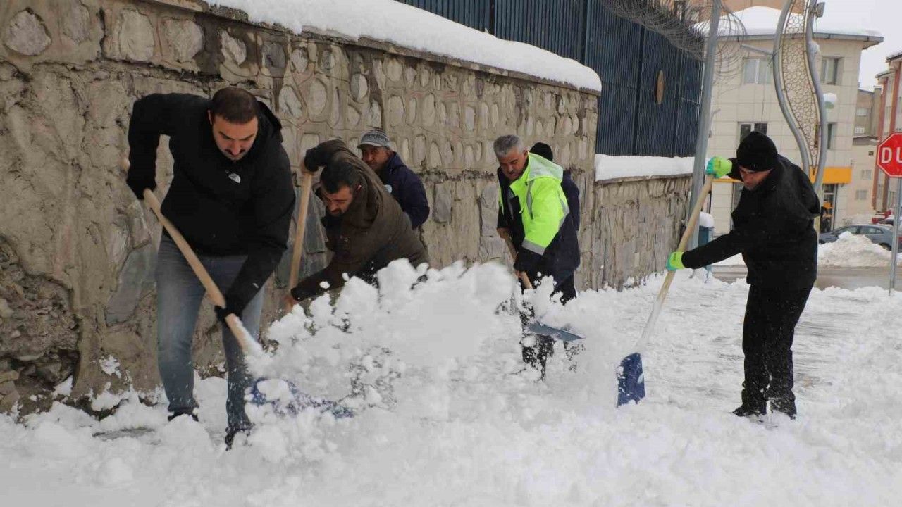 Özel Kalem Müdürü Butan Taş ise kar timine destek vererek kürekle kar temizleme çalışmalarına katıldı.