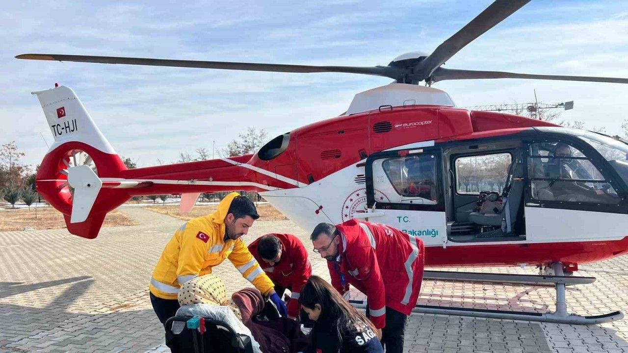 Van’ın Bahçesaray ilçesinde hastanede tedavi gören hamile kadın, ambulans helikopter ile Van’a getirildi.