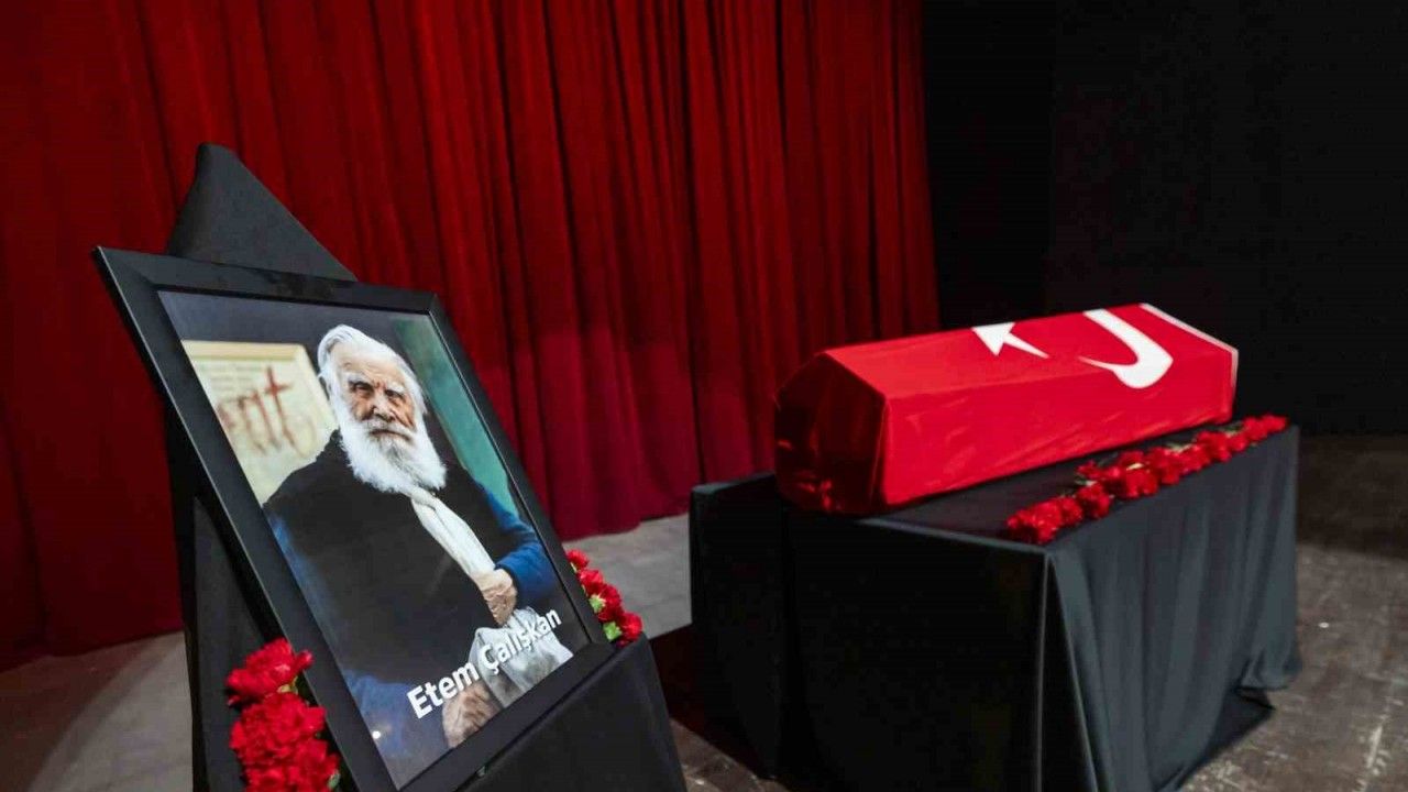 İstanbul’da tedavi gördüğü hastanede hayatını kaybeden, Cumhurbaşkanlığı Kültür ve Sanat Büyük Ödülü sahibi, Atatürk’ün imzasını stilize eden kaligrafi sanatçısı Etem Çalışkan (97) için memleketi Mersin’de tören düzenlendi. Mersin Kültür Merkezi’ndeki törene Vali Ali Hamza Pehlivan, Büyükşehir Belediye Başkanı Vahap Seçer, sanatçının eşi Güngör Çalışkan, çocukları Raci Çalışkan, Adnan Çalışkan ve Dilek Çalışkan’ın yanı sıra protokol üyeleri ve sevenleri katıldı.