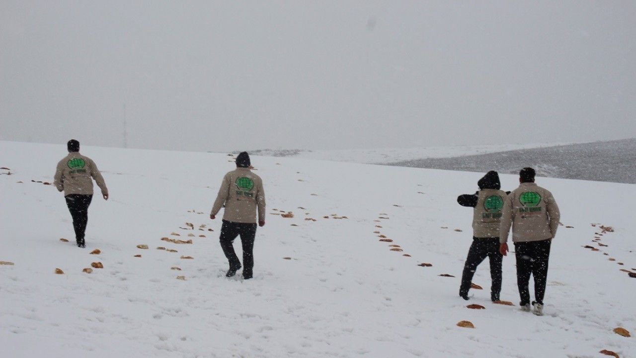 Umut Kervanı Ağrı Derneği üyeleri, yabani hayvanlar için doğaya et, yem ve ekmek bıraktı.
