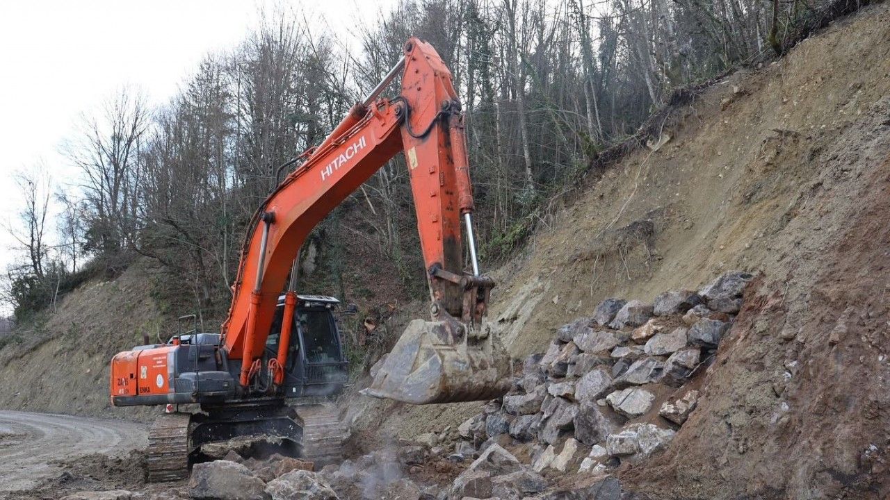 DÜZCE(İHA) – Düzce’nin Derdin köyünde heyelan sonrası yol güvenliği için yoğun çalışmalar devam ediyor.