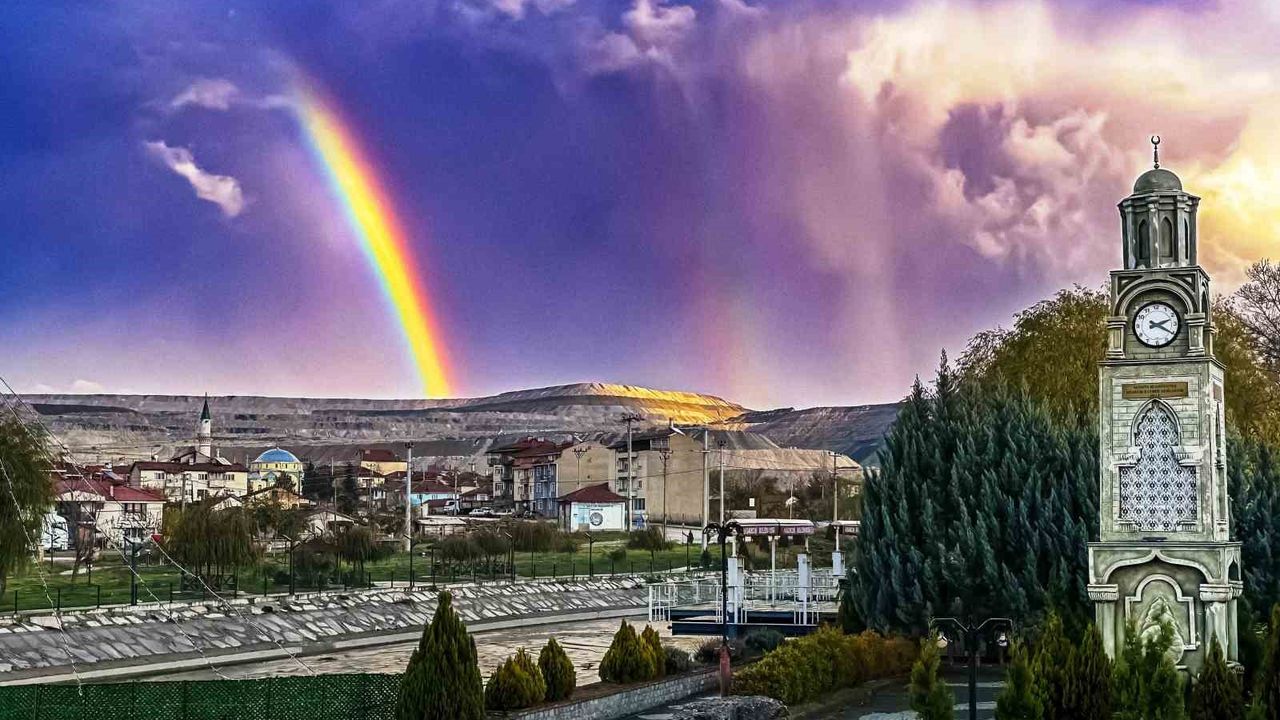 Yağmur sonrası ortaya çıkan renkli manzara, vatandaşların büyük ilgisini çekti. Saat Kulesi ile gökkuşağının buluştuğu o anlar, görenleri hayran bıraktı. Bu eşsiz doğa olayını cep telefonuyla görüntüleyen Veteriner Hekim Ali Var, sosyal medyada paylaştı. Paylaşımlar kısa sürede büyük beğeni topladı.