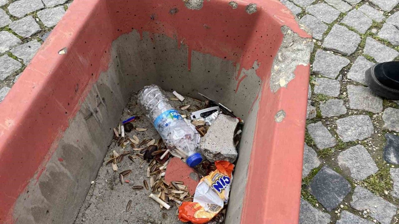 Eskişehir’in en turistik noktalarından birisi olan Tarihi Odunpazarı Evleri bölgesinde bazı duyarsız vatandaşlar içerisinde çiçek olması gereken boş beton saksıyı çöp kutusuna çevirdi.