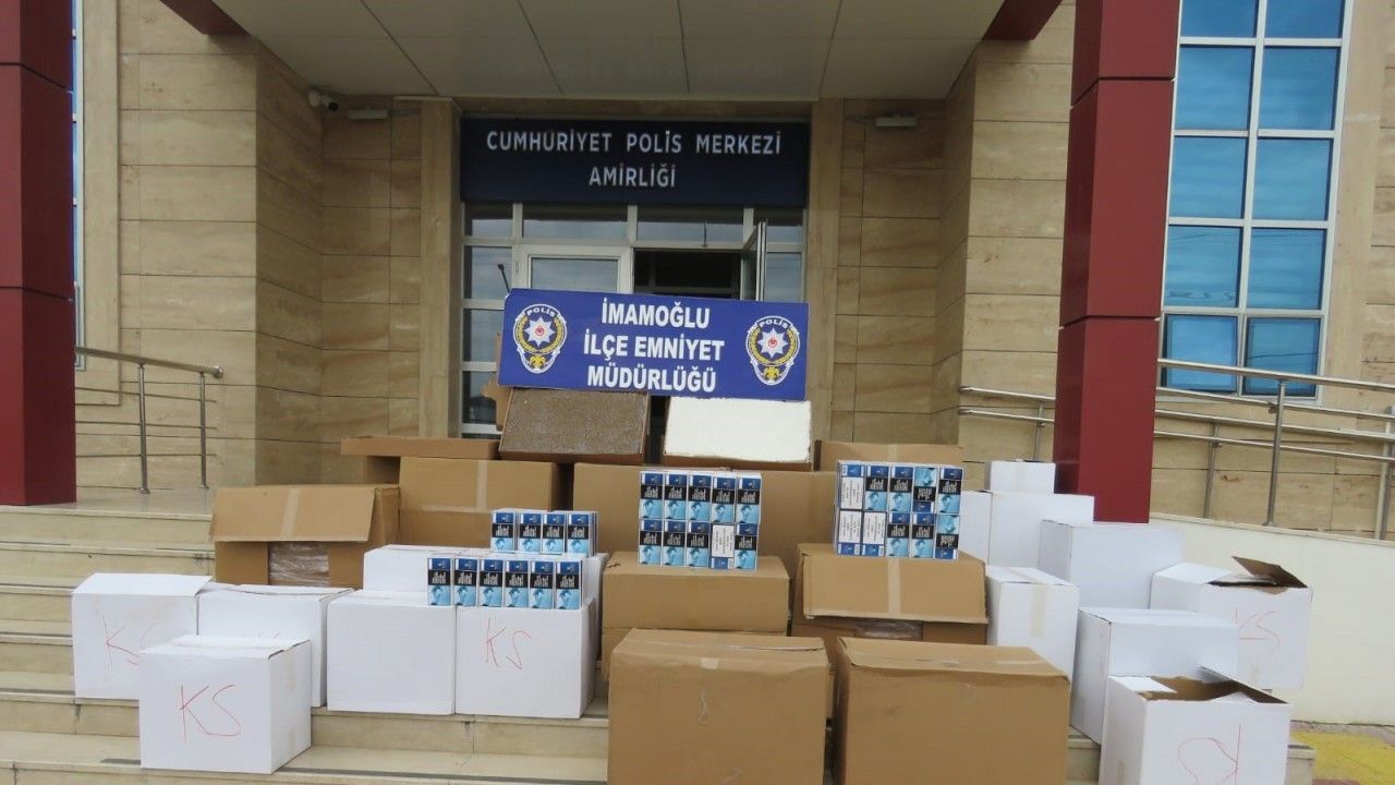 İmamoğlu İlçe Emniyet Müdürlüğü tarafından yapılan çalışmada, İ.C.D. isimli şüpheli gözaltına alınırken şüpheli polis ilçe emniyet müdürlüğüne götürüldü. Otomobilde 14 koli içerisinde 28O bin kaçak sigara ve 150 bin kaçak makaron ele geçirildi.