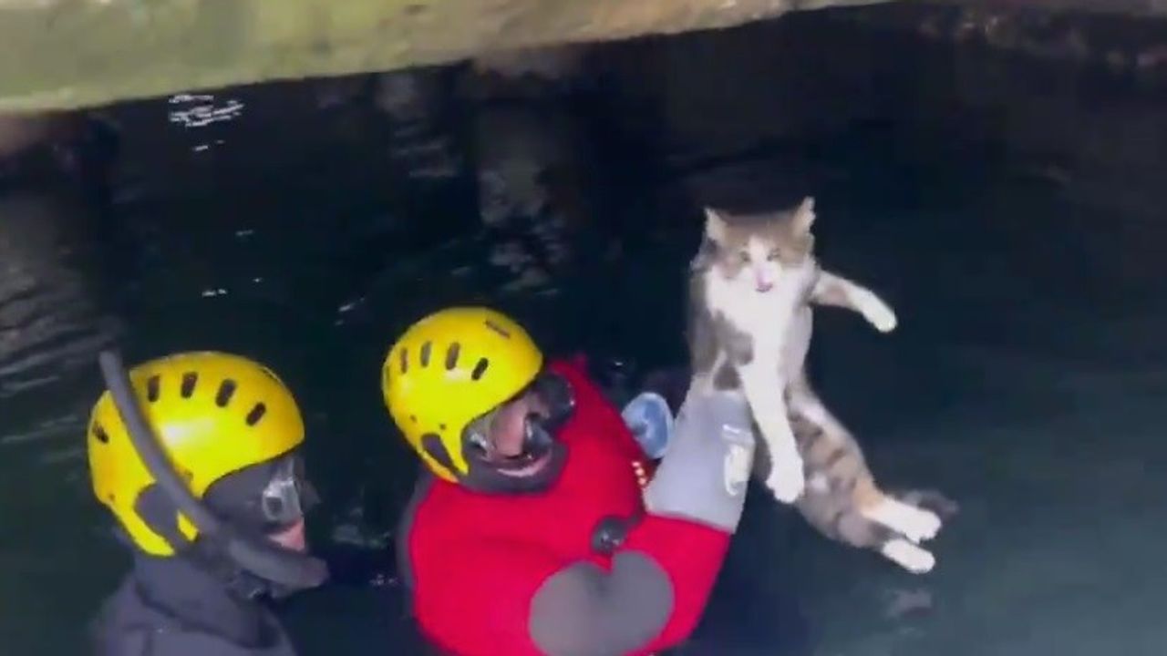 Olay, akşam saatlerinde Heybeliada iskelesinde yaşandı. İskelenin altından kedi sesinin geldiğini duyan vatandaşlar, durumu itfaiye ekiplerine haber verdi. Olay yerine gelen itfaiye ekipleri denize girerek, kediyi mahsur kaldığı yerden kurtardı. Sağlık durumunun iyi olduğu görülen kedi doğal yaşam alanına bırakıldı. Kedinin kurtarılma anları ise kameraya yansıdı.