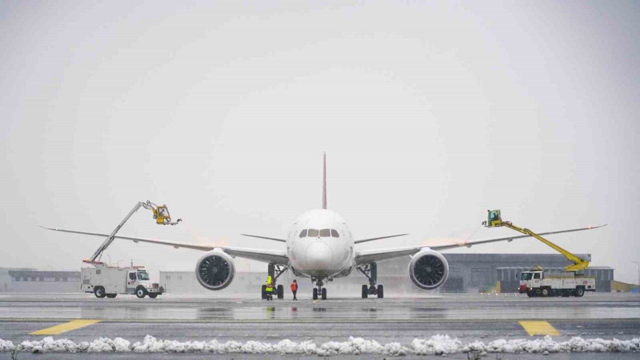 İGA İstanbul Havalimanı’nda uçaklar "de-icing" ve "anti-icing" adı verilen buz çözücü özel sıvılarla yıkanıyor. Havalimanında seferlerde herhangi bir aksama yaşanmıyor.