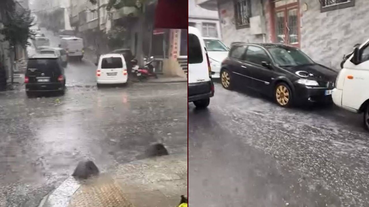 Bağcılar ve Gaziosmanpaşa’ da öğle saatlerinde etkili olan kısa süreli dolu yağışı vatandaşlara zor anlar yaşattı. Aniden başlayan dolu yağışı, sel sularına neden oldu. Kimi vatandaşlar işletme tentelerinin altına kaçarken, çocuklarda yürümeye devam etti. Cep telefonu kamerasına yansıyan görüntülerde dolu yağışı ve cadde de sel suları oluştuğu görülüyor.