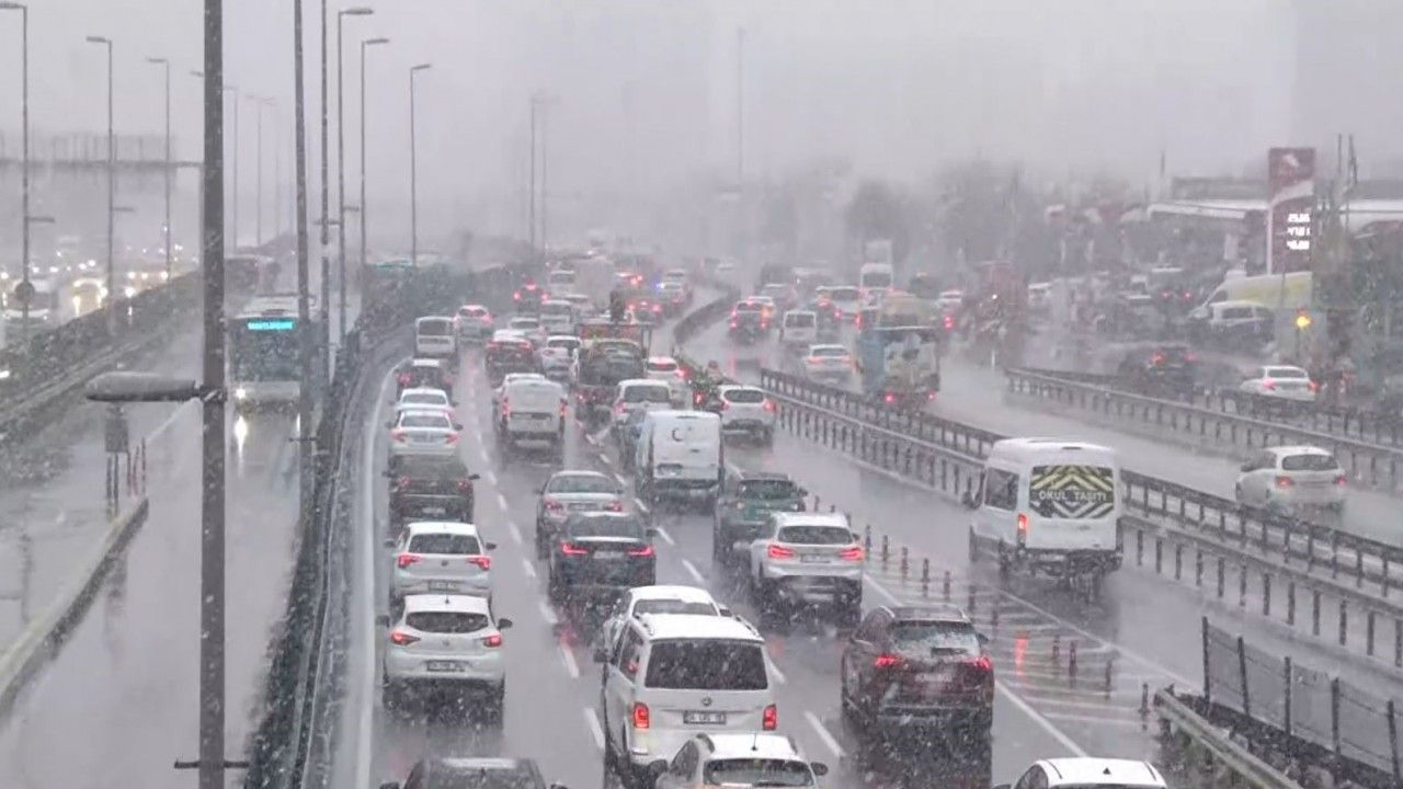 İstanbul’da aniden bastıran kar yağışı nedeniyle trafikte yoğunluk yaşandı. Cevizlibağ’da yoğunluk nedeniyle araçların güçlükle ilerlediği görüldü.