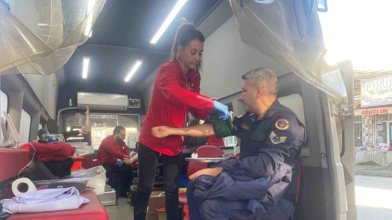 Aydın’ın Karpuzlu ilçesinde jandarma personelleri Kızılay’a kan bağışında bulundu.