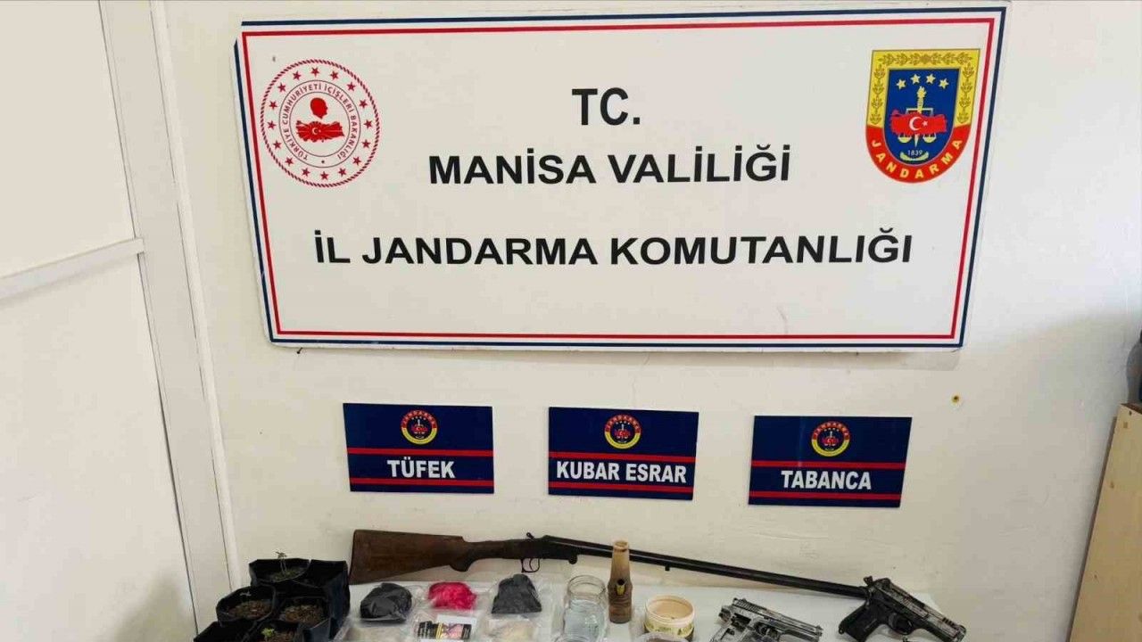 Adli makamlardan alınan arama kararının ardından Şehzadeler İlçe Jandarma Komutanlığı ile Manisa İl Jandarma Komutanlığı KOM Şube Müdürlüğü ekiplerince 12 Şubat Çarşamba günü Ö.S. ve C.Y. adlı şahısların ev ve işyerlerinde eş zamanlı olarak operasyon düzenlendi. Yapılan arama sonucunda; 4 adet ruhsatsız tabanca, 1 adet av tüfeği, 86 adet muhtelif çapta tabanca fişeği, 145 gram kubar esrar, 35 kök kenevir bitkisi, 2 adet uyuşturucu madde kullanma aparatı, 1 adet muşta, 1 adet bıçak, 2 adet cep telefonu ele geçirildi.